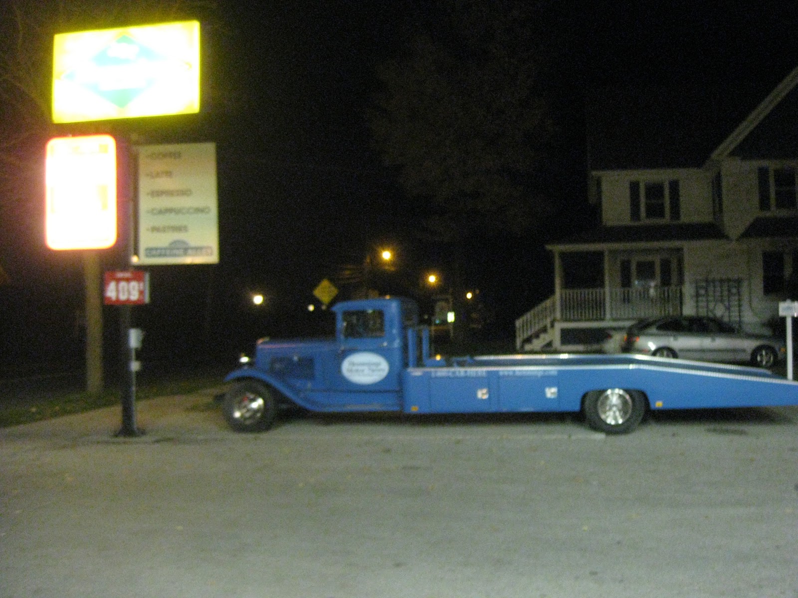 the run north was occasionally challenging, but with Beth as co-pilot, I at least had a witness to the oddness of a mid-day Friday stripe painting session in West Virginia … and at the end of her time in the chev’ Malibu I was in Vermont! at a gas station owned by Hemming’s motornews! woot!