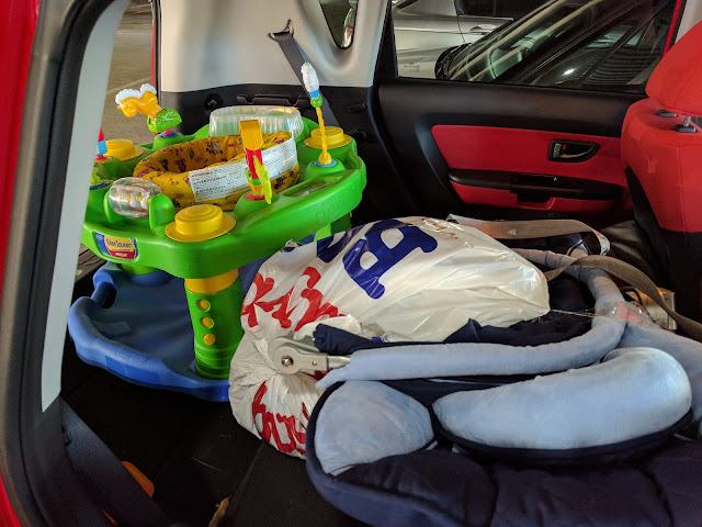 … she’s normally a spastic ‘I’m out of here!!!’ car passenger. Yesterday, she waited while I opened the door, then just kinda flopped right there. For 5 minutes. Even when Boo came out and sat with her to encourage her to exit. Just … so very very high. But much better now.